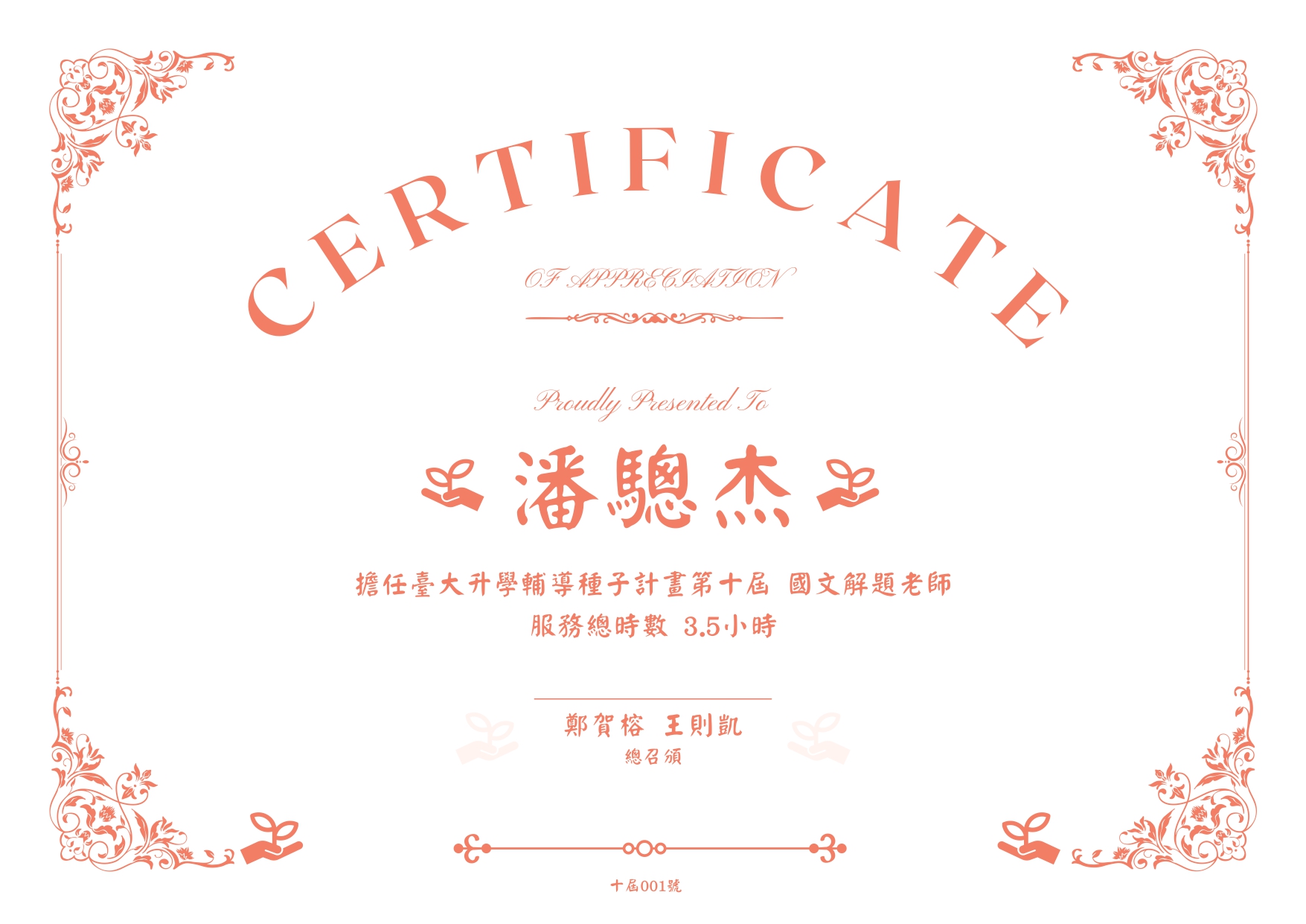 - NTU Admission Counseling Seed Program 台大升學種子計畫, Teacher for “Chinese Composition”